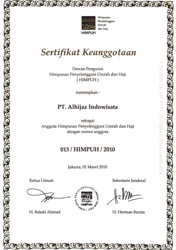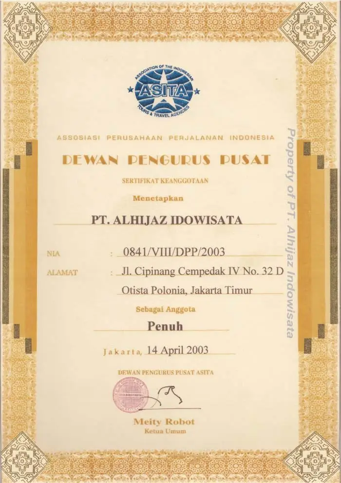 LEGALITAS PT. ALHIJAZ INDOWISATA